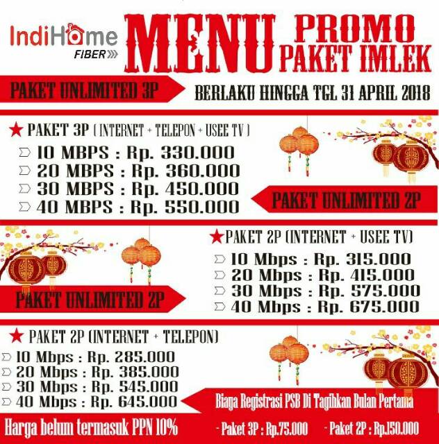 Tarif pasang baru indihome gresik. Biaya paket indihome telkom gresik 2p internet dan useetv. Biaya ini akan digabungkan pada pembayaran pertama bersama biaya paket … Rp 915.000 (belum ppn 10%) note : Rp 400.000 (belum ppn 10%) speed 30 mbps: Harga paket indihome gresik paket penuh berkah: Rp 345.000 (belum ppn 10%) speed 50 mbps: Rp 100,000 (sekali saja) biaya berlangganan indihome gresik per bulan (tripleplay) speed 10 mbps: Rp 330.000 (belum ppn 10%) speed 20 mbps: Rp 560.000 (belum ppn 10%) speed 100 mbps: Biaya pemasangan (sekali saja) biaya paket berlangganan (bulanan) biaya pemasangan adalah rp 75.000 untuk paket 3p atau rp. Rp 150.000 (sekali saja) biaya berlangganan per bulan: Stuktur biaya atau tarif pemasangan baru indihome di gresik adalah sebagai berikut: